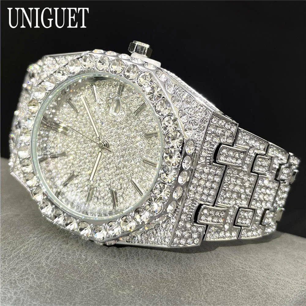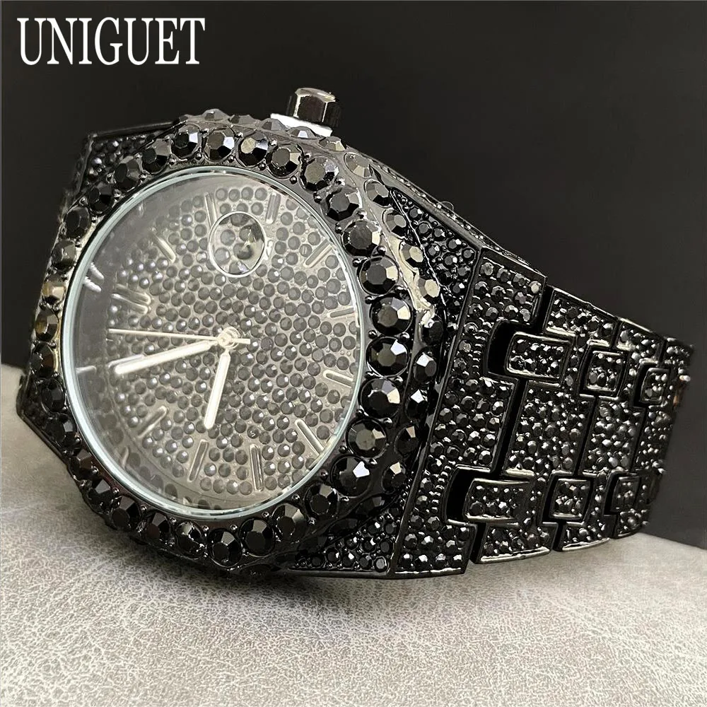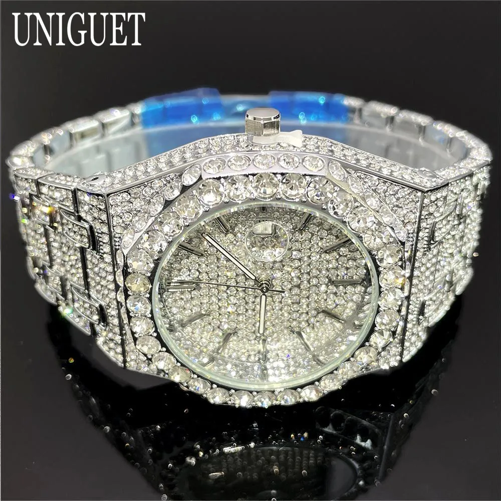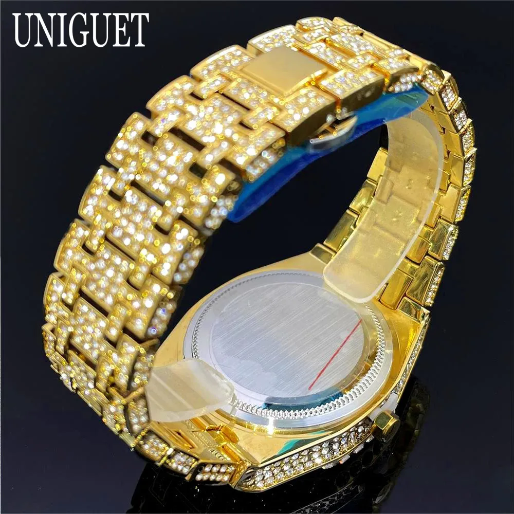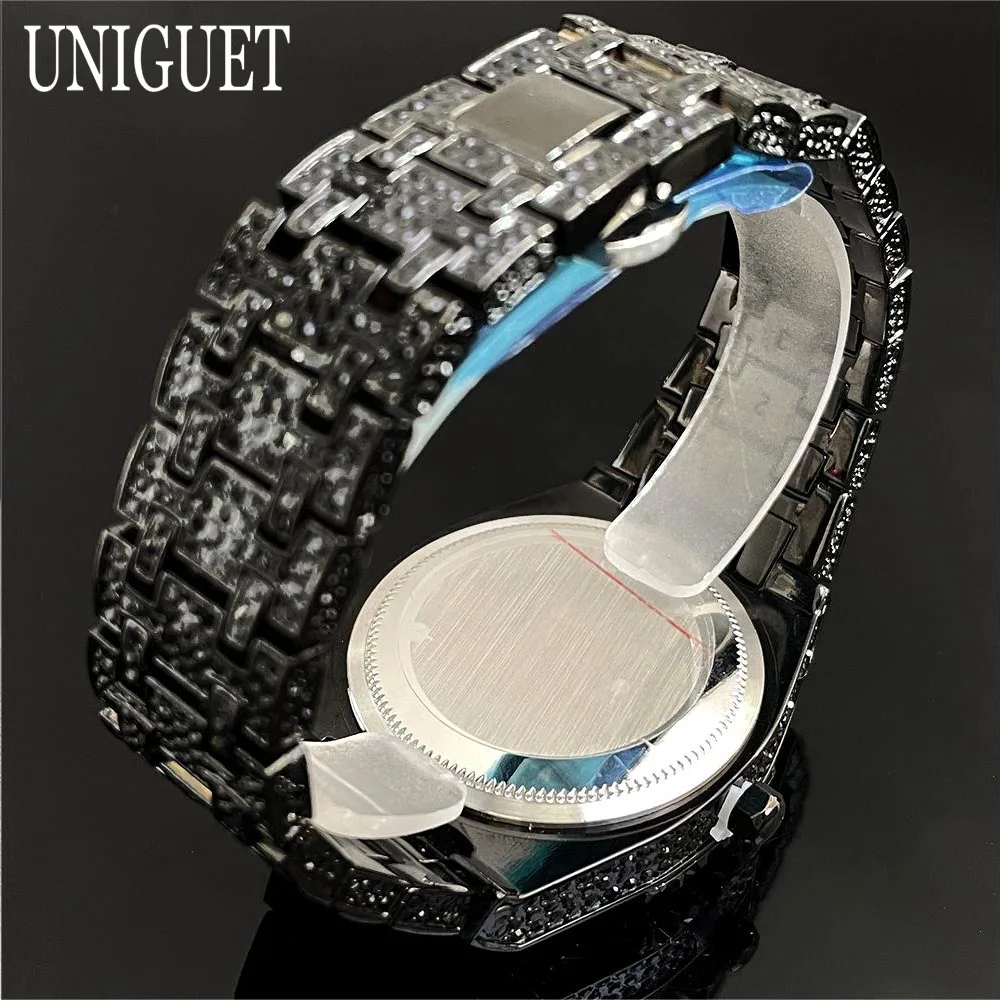 2025 New Luxury Brand UNIGUET Iced Watch For Men Fashion Hip Hop Diamond Waterproof Stainless Steel Wristwatch Male Dropshipping