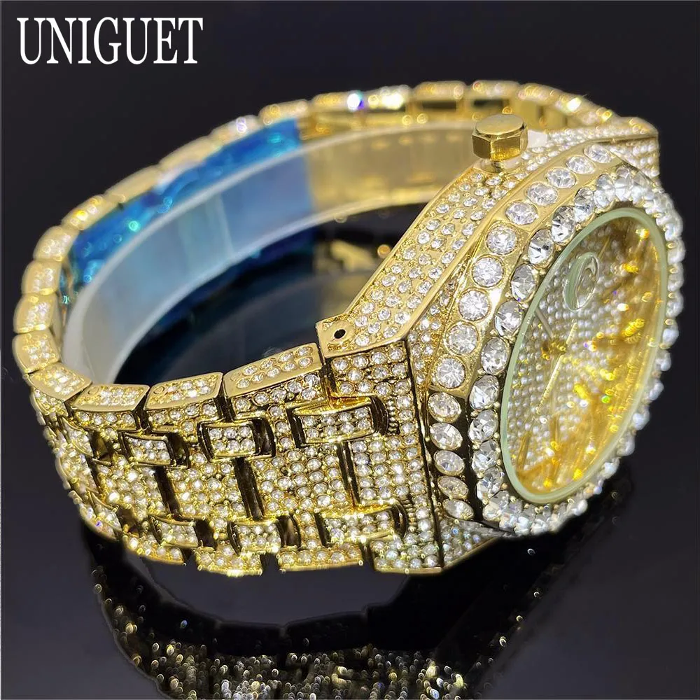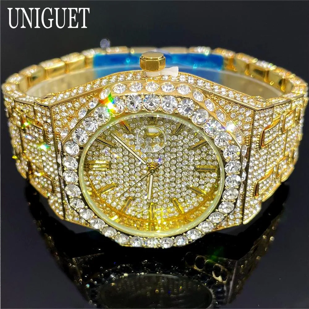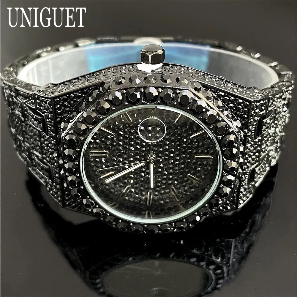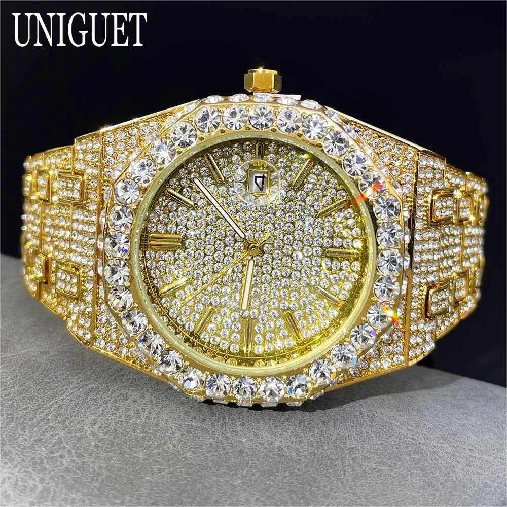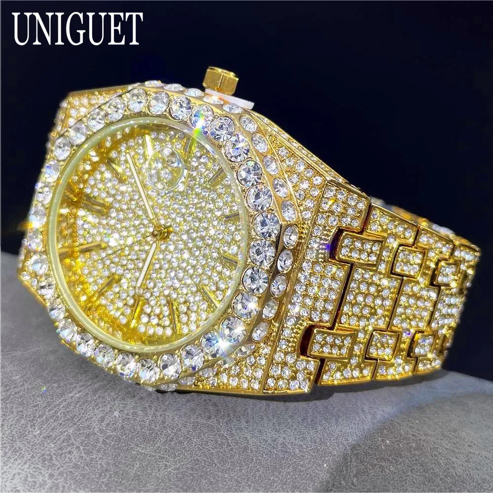 2025 New Luxury Brand UNIGUET Iced Watch For Men Fashion Hip Hop Diamond Waterproof Stainless Steel Wristwatch Male Dropshipping
